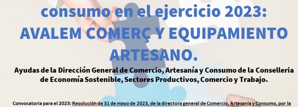 La Dirección General de Comercio, Artesanía y Consumo de la Generalitat Valenciana ha publicado la convocatoria de las ayudas Avalem comerç y Avalem Establiment Artesá en materia de comercio, consumo y artesanía correspondientes al ejercicio 2023 para apoyar el comercio de proximidad y la artesanía.