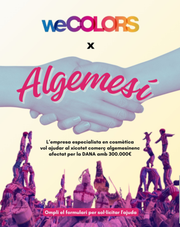Entre las iniciativas de colaboración y ayuda que han surgido con motivo de la DANA, destacamos la de We Colors, una empresa de cosmética con sede en Barcelona que ha decidido aportar 300.000 euros a los pequeños comercios de Algemesí.