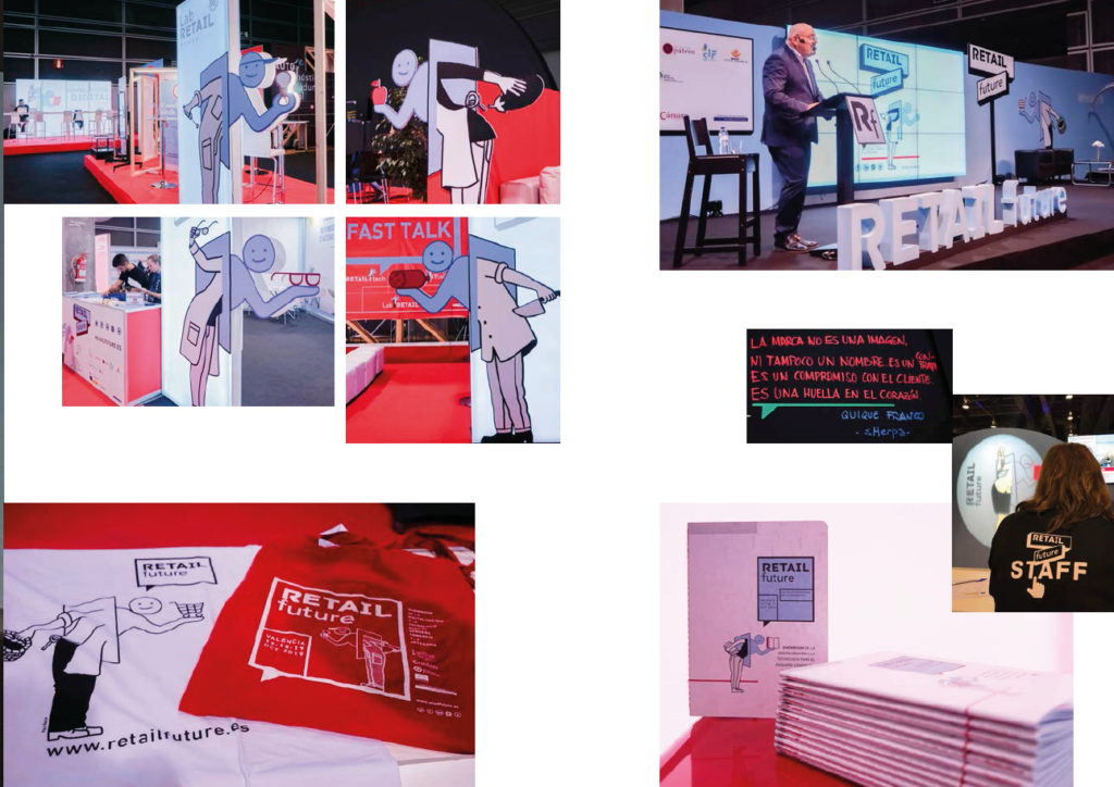 En cada RETAIL future hemos tenido la suerte de contar con un ilustrador o ilustradora que ha puesto su talento y su estilo para nuestra comunicación, como definió Pablo en los primeros años, “una manera de hacer más amable la imagen corporativa mediante este human branding o logo ilustrado”.